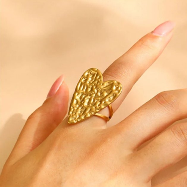 Loin des classiques, la bague Nora revisite le symbole universel du cœur avec une approche artistique et contemporaine. Son plateau généreux en forme de cœur présente une texture martelée irrégulière qui accroche la lumière sous tous les angles, créant un éclat solaire unique.
