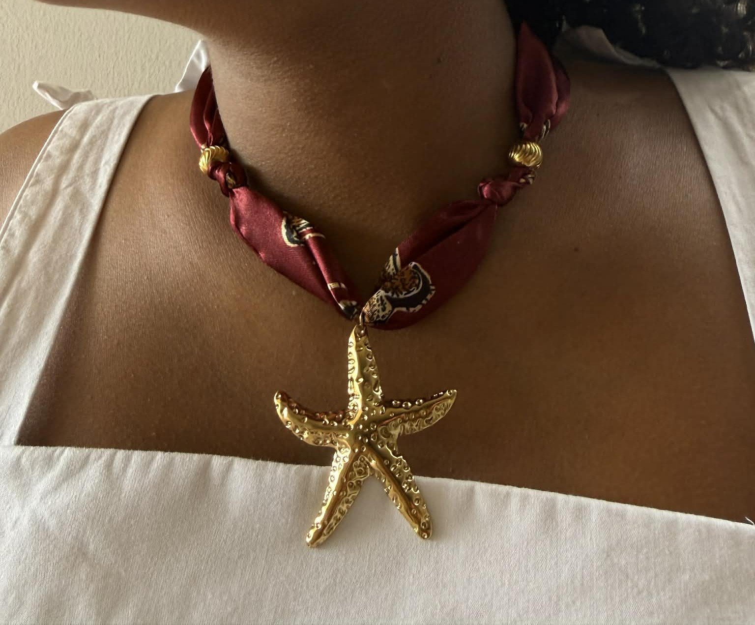Modèle Étoile : Une étoile de mer dorée, imposante et texturée, parfaite pour un look solaire et estival.