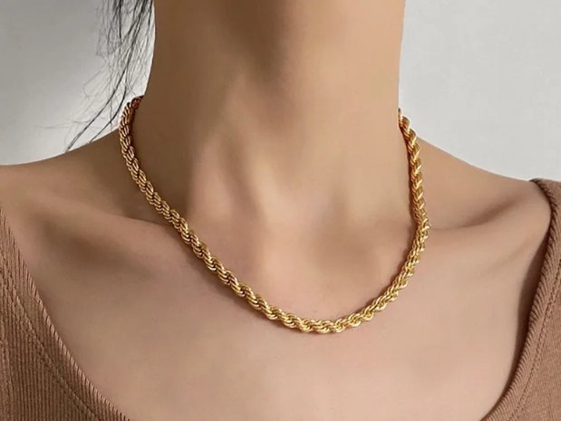 Design Impactant : Ce collier est un maillage torsadé épais. Il crée un volume impressionnant autour du cou. La structure en spirale lui confère une brillance dynamique qui attire la lumière.