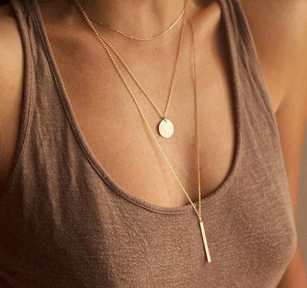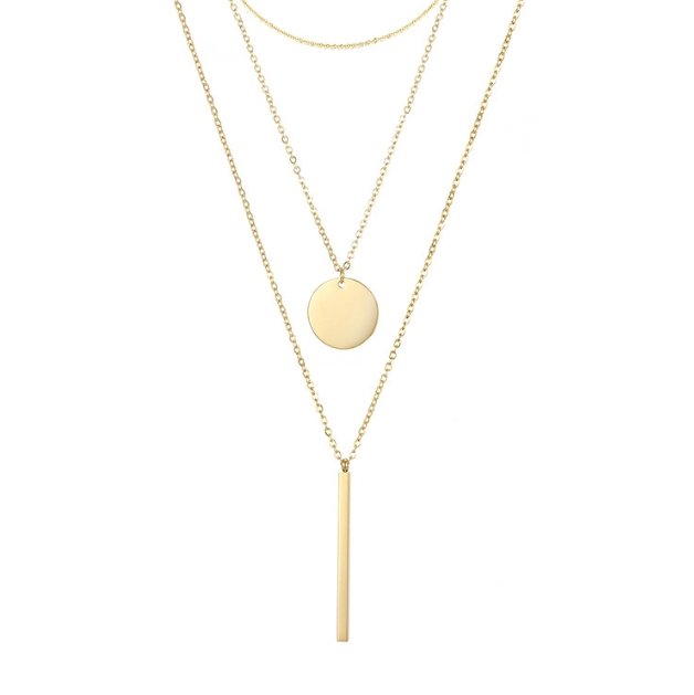 Cet ensemble sophistiqué se compose de trois chaînes dorées superposées, agrémentées d’une médaille délicate et d’un pendentif barre vertical. Un bijou intemporel, parfait pour ajouter une touche de lumière à vos tenues quotidiennes ou pour parfaire un look de soirée.